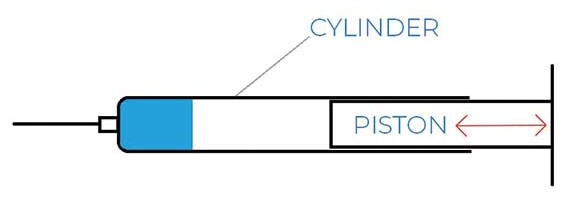 向后拉注射器的活塞會產生吸力,將液體拉入氣缸,同時向前推動活塞將液體通過注射器的推頭排出(圖 1)�