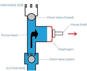 � 5 和圖 6 進一步有助于說明使用兩個止回閥的隔膜泵的操�,一個在吸入側,另一個在排出側。這些閥門在打開和關閉之間交替,與隔膜一起實現吸入和排放�